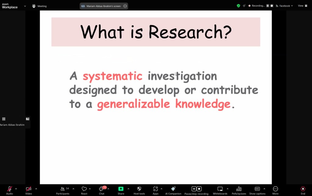 In this insightful lecture, Prof. Ibrahim delved into the crucial topics of research ethics and the ethical approval processes that every researcher must navigate. Her extensive experience in both the academic and practical aspects of research ethics made this session a valuable learning opportunity for all attendees.